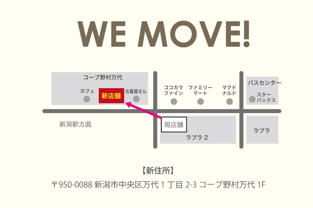 いつもCAELUM AVEDAをご利用いただき、誠にありがとうございます。この度、CAELUM AVEDAは現店舗での営業を12月15日(月)で終了し12月17日(水)より下記へ移転することになりましたのでご案内申し上げます。【新住所】〒950-0088 新潟市中央区万代1丁目2-3 コープ野...